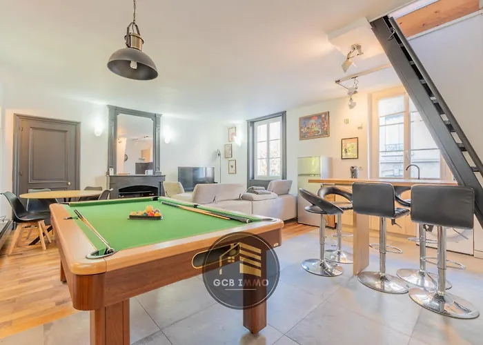 דירת Style indus & Billard - Coeur de Grenoble ממוקמת במרכז של גרנובל, בקרבה על Jardin de Ville. דירה זו כוללת איזור התלבשות, ספה וציוד להכנת קפה או תה וכמו כן גם מטבח מצויד אשר ישנם בו מיקרוגל, מקרר וכלי מטבח.